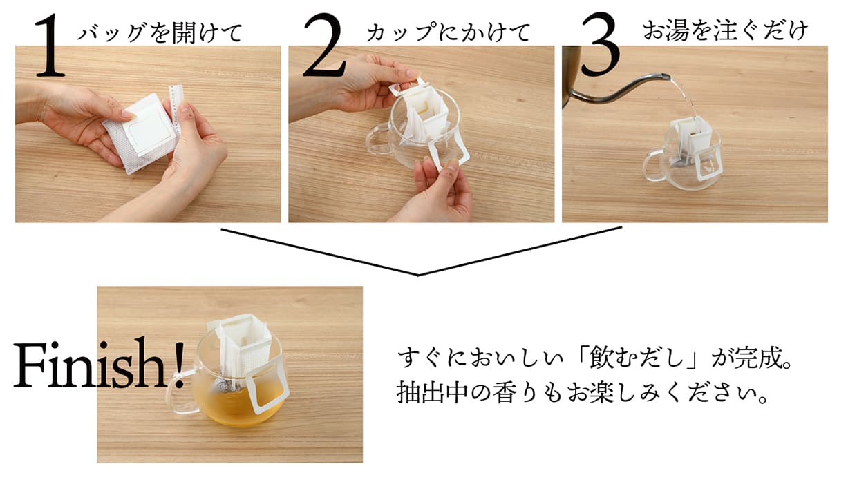 そのようなかつお節のだしを⼿軽にドリップで飲めるのはいいですね。